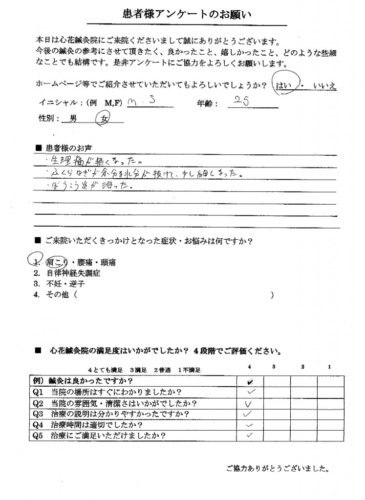 生理痛が無くなった。